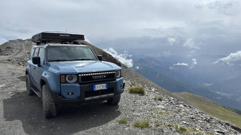 E' dal dicembre 2024 che è con noi, usata per gli spostamenti quotidiani e per i we con qualche tratto in fuoristrada. Il LC 250 viene mosso da un motore TD 4cilindri da 2.8 L, previsto di 204cv e 500nm di coppia è perfetto per viaggiare. Utilizziamo una tenda da tetto I-Kamper montata su barre Thule . Unica modifica sono i pneumatici goodyear wrangler duratrac rt 265 /65r18 POR. Estremamente comoda e veloce nei trasferimenti, il cambio AT a 8 rapporti è fantastico e veloce nel fuoristrada. Ottimo il sistema di trazione con i diversi programma a gestione elettronica per le diverse tipologie di terreno. Alla tecnologia affianca anche i classici sistemi tradizionali, infatti è dotata di differenziale centrale bloccabile, bloccabile anche il differenziale posteriore e la possibilità di disattivare la bara stabilizzatrice anteriore. Unico difetto riscontrata è l'altezza da terra , per un fuoristrada più estremo andrebbe alzata.