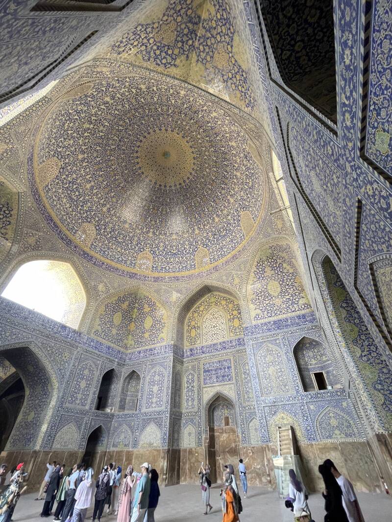 La città è stupenda, presenta una piazza enorme lunga 512m e larga 163m chiamata Naqsh-e Jahan, l’architettura è diversa da tutti i paesi islamici girati sino ad ora, le moschee sono rivestite tutte da piastrelle blu azzurro, è possibile entrare in tutte le moschee nei momenti dove non ce’è la preghiera, è una città che si gira facilmente a piedi.